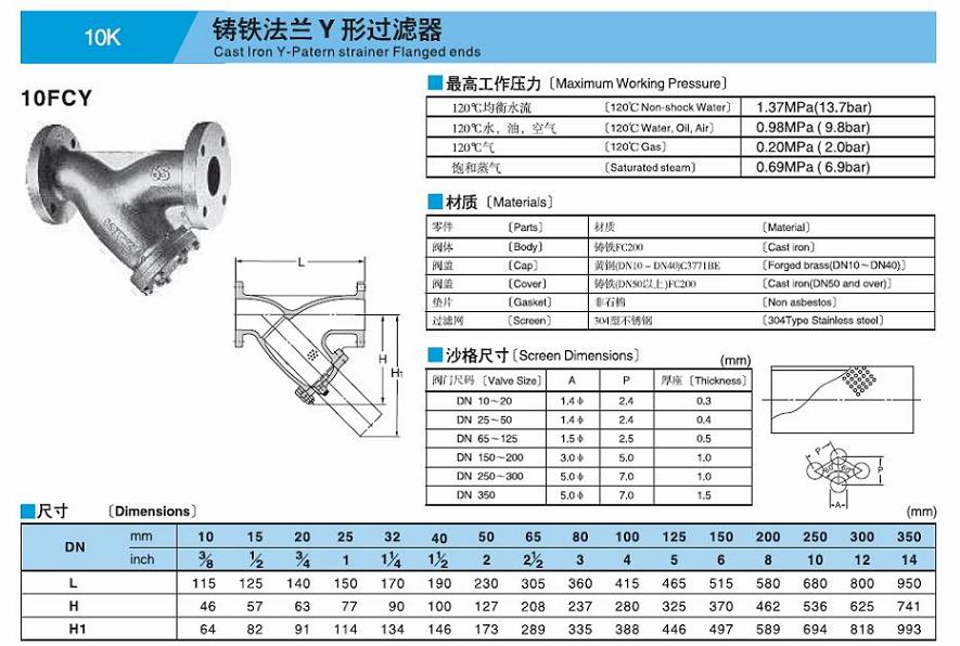 鑄鐵法蘭過濾器10FCY
