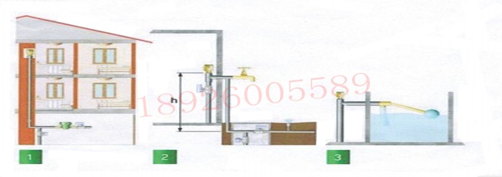 3、軟管型真空破壞閥安裝高度應設置在距地面1000mm以上;用于固定器具的(澡盆或洗衣機),應高出其最高溢流水位150mm以上。